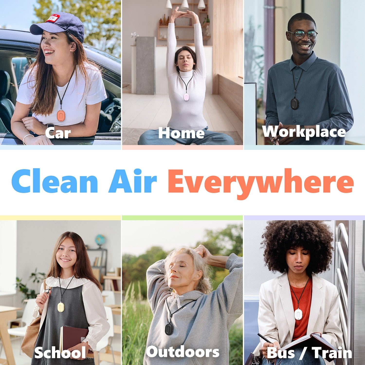- Aire limpio en todas partes: se puede colgar alrededor del cuello, colocar en el escritorio, en el automóvil o junto a tu cama por la noche